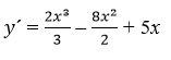 Производная функции у = 2х2 – 8х + 5 будет иметь вид: …- y´ = 4x – 8