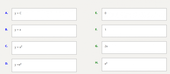 Установите соответствие между элементарной функцией и значением ее производной:Ответ