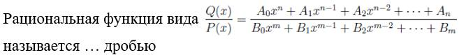 Рациональная функция вида называется .... дробью - Ответ на вопрос по математике №201797