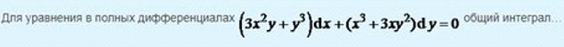 Для уравнения в полных дифференциалах общий интеграл... - Ответ на вопрос по математике №21962