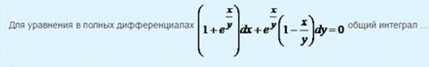 Для уравнения в полных дифференциалах общий интеграл - Ответ на вопрос по математике №21973