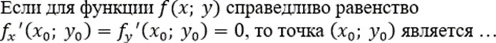 Если для функции f (x; y) справедливо равенство fx'(xo; yo) = fy'(xo; yo) = 0, то точка (хо; Уо) является..