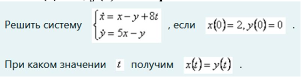Решить систему x` = x – y + 8t, y` = 5x – y, - Ответ на вопрос по математике №960472