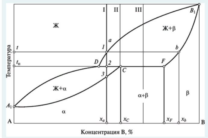 а. когда наружные и центральные зоны слитка обогащены компонентом, понижающим температуру