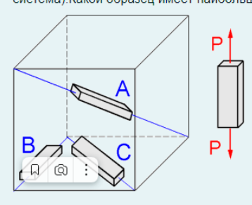 Образцы были вырезаны из монокристалла железа (объемноцентрированная кубическая система). Какой образец имеет наибольшую жесткость (модуль упругости)?