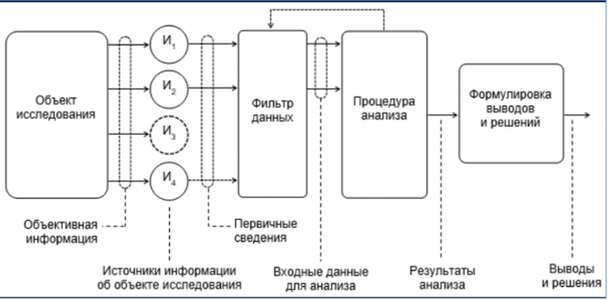На рисунке ниже показана схема процесса получения достоверных входных данных для стратегического анализа. На каком этапе и почему часто применяются различные методы теории вероятностей, математической статистики, экспертных оценок, процедур Delphi и т.п.?