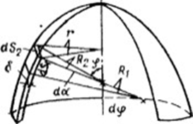 На рисунке представлена поверхность оболочки вращения. Для вывода формулы нормальных напряжений в шаре необходимо принять следующее условие