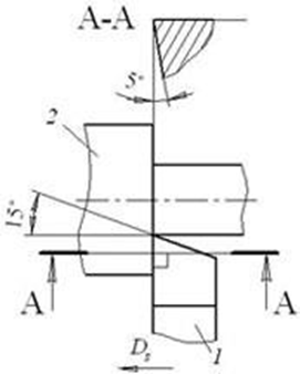 Показанный на рисунке проходной упорный резец 1, обрабатывающий заготовку 2 с движением подачи Ds, имеет главный угол в плане