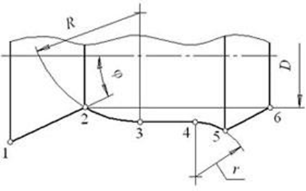 На рисунке показан профиль, для обработки которого используется ортогональный фасонный резец. Базовая линия этого профиля проходит через точку (точки)