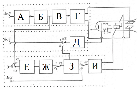 Ответ на вопрос №65230: Расставьте блоки структурной схемы осциллографа в правильном порядке. Двухтактный усилитель Y Схема формирования синхроимпульса Линия задержки Двухтактный усилитель Х Предварительный усилитель Усилитель Z Генератор пилообразного напряжения Усилитель внутренней синхронизации Входной делитель Расставьте блоки структурной схемы осциллографа в правильном порядке. - Ответ на вопрос №65230Расставьте блоки структурной схемы осциллографа в правильном порядке. - Ответ на вопрос №65230