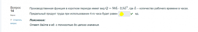 Ответ на вопрос №7810: Производственная функция в коротком периоде имеет вид Q=50L–2,5L2�=50�–2,5�2, где L� – количество рабочего времени в часах. Предельный продукт труда при использовании 4-го часа будет равен Ответ ед. Производственная функция в коротком периоде имеет вид - Ответ на вопрос №7810Производственная функция в коротком периоде имеет вид - Ответ на вопрос №7810