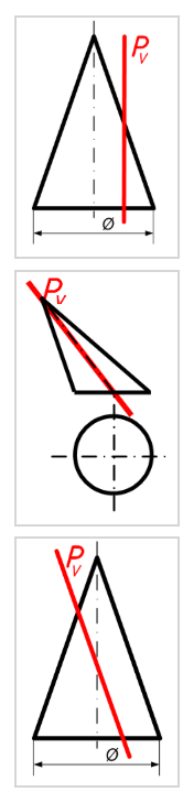 Установите правильное соответствие между секущими плоскостями Р и кривыми, которые получаются в сечении.