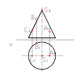 Точка ... принадлежит поверхности конуса - Ответ на вопрос по начертательной геометрии №14778