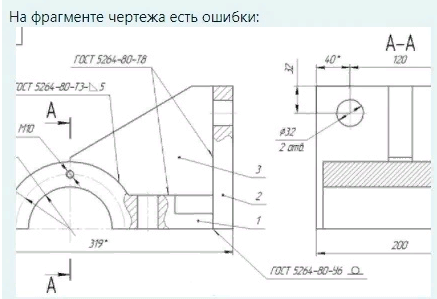 Ответ на вопрос по начертательной геометрии №17241: На фрагменте чертежа есть ошибки: Выберите один или несколько ответов: Неверно выбран тип линий штриховки Штриховка соединенных сваркой сопрягаемых деталей выполнена одинаковой Расстояние между линиями штриховки на изображении разреза А-А уменьшено по сравнению с ИСХОДНЫМ Штриховка на изображении разреза А-А имеет неверный угол наклона На фрагменте чертежа есть ошибки: - Ответ на вопрос по начертательной геометрии №17241На фрагменте чертежа есть ошибки: - Ответ на вопрос по начертательной геометрии №17241