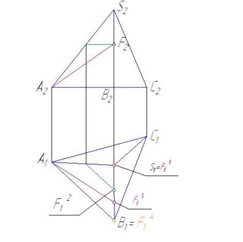 Проекции точки F(F2 ), принадлежащей поверхности Σ (S, A, B, C), на П1 соответствует точка