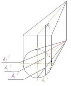 Проекции точки А (A2 ), принадлежащей поверхности наклонного конуса, на П1 соответствует точка