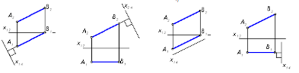 С помощью введения новой плоскости проекций П4 можно одной заменой преобразовать отрезок АВ в проецирующее положение на