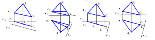 Ответ на вопрос по начертательной геометрии №312805: С помощью введения новой плоскости проекций П4 можно одной заменой преобразовать плоскость АВС в плоскость уровня на чертеже С помощью введения новой плоскости - Ответ на вопрос по начертательной геометрии №312805С помощью введения новой плоскости - Ответ на вопрос по начертательной геометрии №312805
