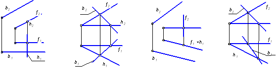 Прямая b принадлежит плоскости Г(h ∩ f) в случае …