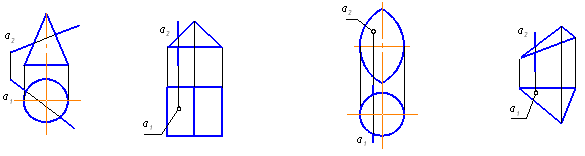 Для отыскания точек пересечения прямой а с поверхностью не нужны вспомогательные построения на чертеже