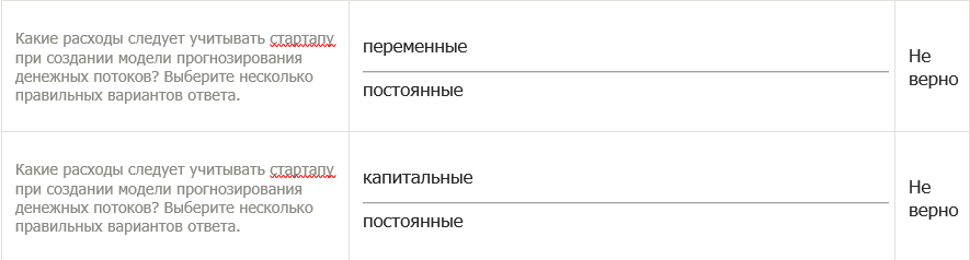 Ответ на вопрос №953520: Какие расходы следует учитывать стартапу при создании модели прогнозирования денежных потоков? Выберите несколько правильных вариантов ответа. Постоянные Операционные Капитальные Переменные Административные Какие расходы следует учитывать стартапу при создании модели - Ответ на вопрос №953520Какие расходы следует учитывать стартапу при создании модели - Ответ на вопрос №953520