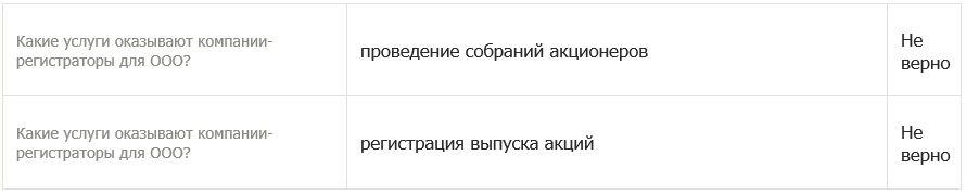 Ответ на вопрос №953543: Какие услуги оказывают компании-регистраторы для ООО? Проведение собраний акционеров Предоставление услуг эскроу-агента Разработка устава общества Регистрация выпуска акций Какие услуги оказывают компании-регистраторы для ООО? Проведение - Ответ на вопрос №953543Какие услуги оказывают компании-регистраторы для ООО? Проведение - Ответ на вопрос №953543