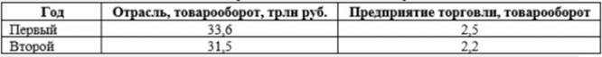 Имеются следующие данные по товарообороту предприятия торговли и отрасли в целом(за два года):