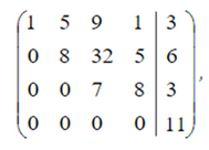 Решая систему 4-х линейных уравнений с 4-мя неизвестными методом Гаусса получили матрицу: