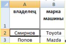 С помощью такого вида операций над данными, как сортировка, можно переупорядочить строки в списке в соответствии с содержанием конкретных столбцов. Например, вам необходимо определить значения для критериев отбора: - Марка 1 – первая марка в списке, отсортированном по полю «владелец» в возрастающем (алфавитном) порядке. - Марка 2 – вторая марка в списке, отсортированном по полю «владелец» в возрастающем (алфавитном) порядке. Приведите технологию выполнения данного задания.Тип ответа: Одиночный выбор