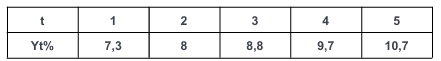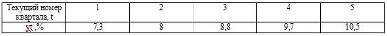 Прогноз процентной ставки банка в шестом квартале, рассчитанный с помощью среднего тела роста, составит: