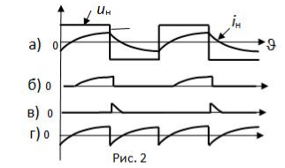 Какой вид имеет ток, показанный на рис.2б, рис.2в, рис.2г,протекающий через диод в схеме рис.1?