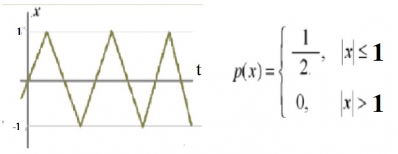 Случайный процесс обладает плотностью распределения вероятности изображенной на рисунке ниже. Найдите среднее среднеквадратическое отклонение.