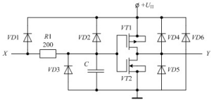 - изоляцию затворов транзисторов VT1 и VT2 от пробоя