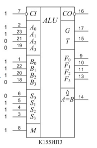 Выходные сигналы АЛУ К155ИП3 - ...