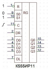 - сдвиг (Q3=DR, Q2=Q3, Q1=Q2, Q0=Q1)
