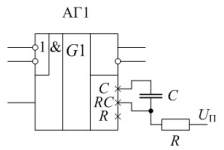 Расчётная длительность выходного импульса одновибратора АГ1, если R = 9,1 кОм, а С = 22 нФ - ...