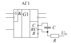 Расчётная длительность выходного импульса одновибратора АГ1, если R = 3,3 кОм, а С = 5,1 нФ - ...