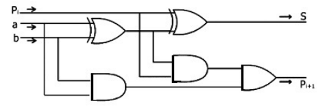 Ответ на вопрос по схемотехнике №971134: На схеме представлена логическая схема сумматора. Чему равны значения выходов S и P если входные сигналы: a = 1; b = 1; P = 0. На схеме представлена логическая схема сумматора. - Ответ на вопрос по схемотехнике №971134На схеме представлена логическая схема сумматора. - Ответ на вопрос по схемотехнике №971134