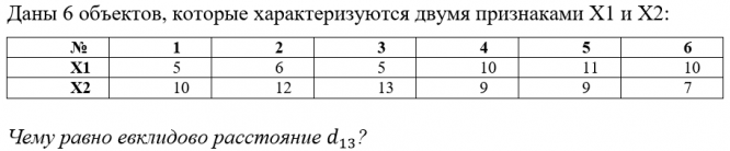 Даны 6 объектов, которые характеризуются двумя признаками Х1 и Х2
