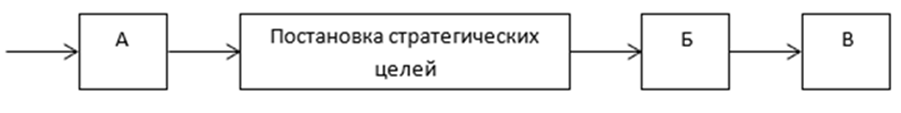 - В блоке Б, т.к. разработка стратегии должна быть обусловлена поставленными стратегическими целями, но завершать процесс стратегического управления должна реализация стратегии.