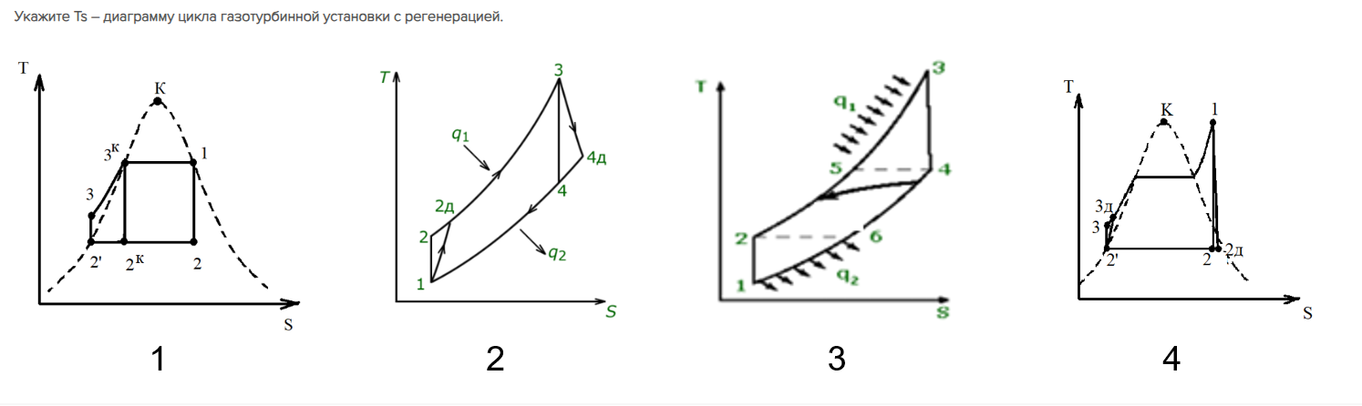 Укажите Ts – диаграмму цикла газотурбинной установки с - Ответ на вопрос по ТТ №264195