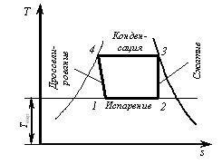 - Ts-диаграмма цикла паровой компрессорной холодильной установки с дроссельным клапаном