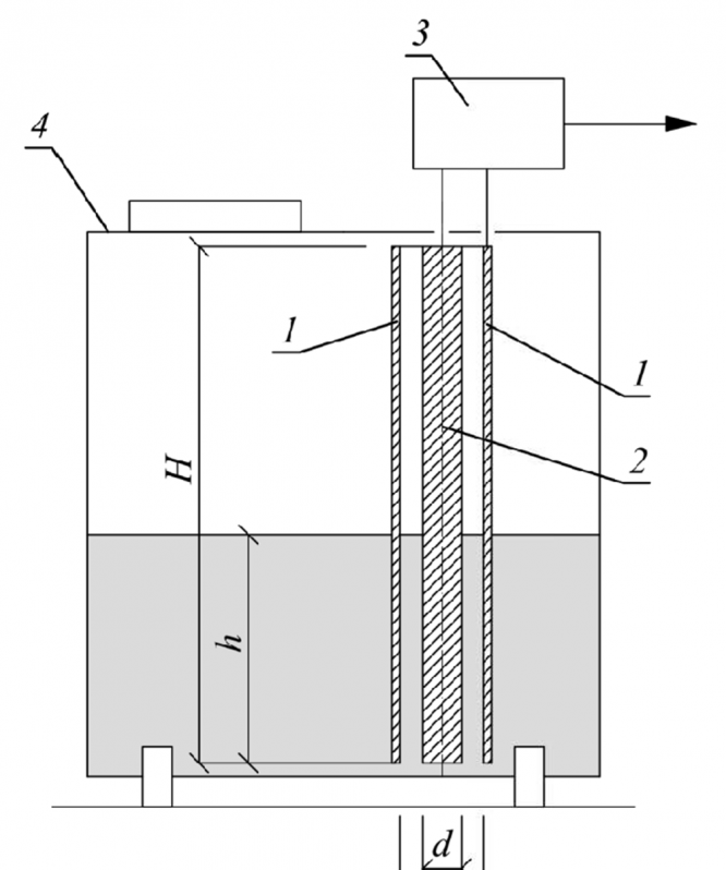 Соотнесите элементы схемы работы емкостного уровнемера с их обозначениями.
