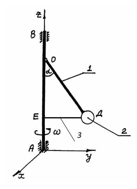 Масса барабана 3: М=10 кг, барабан считать однородным цилиндром. Масса кривошипа 1 (однородный стержень), m=3 кг,