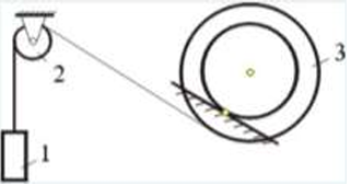В системе, изображенной на рисунке, катушка 3 может катиться по наклонной плоскость без скольжения. В какую сторону покатится катушка при опускании груза 1?
