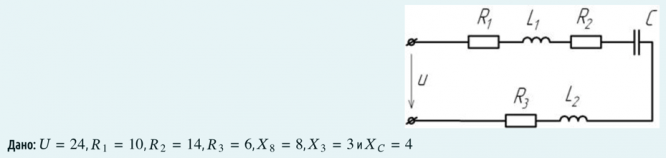 Известно переменное напряжение, приложенное к электрической цепи на рисунке, и все сопротивления.