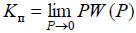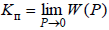 Укажите выражение, позволяющее определить коэффициент передачи САУ по известной передаточной функции W(P) .-