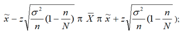 Доверительный интервал для оценки генеральной средней при собственно-случайной повторной выборке объемом n≥30 может быть записан как:Ответ