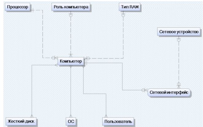Приведенная ниже диаграмма соответствует уровню представления модели в ERwin