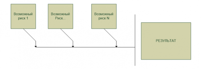 Ниже представлена схема метода, который иллюстрирует взаимодействие различных факторов в проекте и помогают определить возможные причины (риски), которые могут оказать негативное влияние на решение заданной проблемы. Схема какого метода представлена ниже?